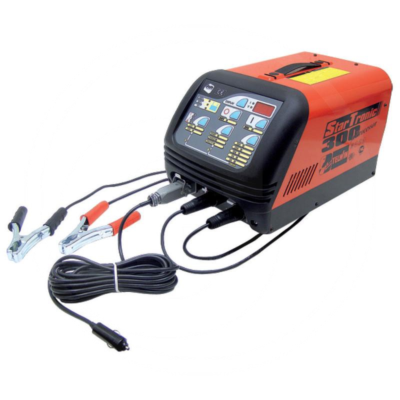 - Wersja: Elektroniczny, sterowany mikroprocesorem prostownik do ładowania akumulatorów kwasowych, niklowo-kadmowych i żelowych i wspomagania rozruchu. Umożliwia rozruch samochodów z silnikami benzynowymi oraz diesla (w tym vanów, lekkich ciężarówek i traktorów). Cyfrowy miernik prądu i czasu ładowania oraz napięcia na akumulatorze. Elektroniczna regulacja prądu i czasu ładowania. Płynna regulacja prądu ładowania w zakresie 1- 40A. Wybór czasu trwania ładowania: 2h, 4h, 6h, 10h. Trzy stany pracy: ładowanie, rozruch, podtrzymanie. Prostownik STARTRONIC jest bezpieczny dla układów elektronicznych w samochodzie (ABS, poduszki powietrzne). Funkcja PODTRZYMANIA uaktywnia się poprzez podłączenie prostownika do gniazda zapalniczki. Umożliwia odłączenie i wymianę akumulatora bez utraty ustawień urządzeń elektronicznych w samochodzie. Proces ładowania akumulatorów sterowany elektronicznie. Automatyczne wyłączenie po osiągnięciu na akumulatorze napięcia 7,2V (przy akumulatorze 6V), 14,4V (przy akumulatorz
