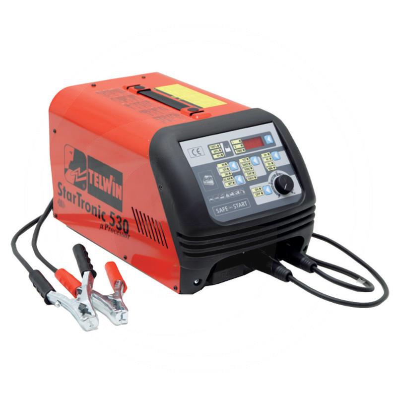 - Wersja: Jednofazowy, sterowany mikroprocesorem, cyfrowy prostownik z rozrusznikiem do ładowania różnych akumulatorów (WET, żelowe,/AGM), z napięciem 6/12/24 V, praz do rozruchu pojazdów, samochodów dostawczych, małych ciężarówek. Startronic chroni elektronikę pojazdu, jak ABS, Airbag,elektroniczne wtryski itd. Funkcje: TEST,CHARGE,TRONIC, START i STAND-BY. Funkcja STAND-BY , aktywowana przez podłączenie do gniazda zapalniczki, pozwala na odłączenie akumulatora od pojazdu i doładowanie go, bez utraty informacji i ustawień komputera pokładowego. Funkcja TRONIC pozwala na aelektroniczne sterowanie prądem ładowania oraz automatyczne przerwanie i wznowienie procesu ładowania. Właściwości główne: • cyfrowe wskazanie napięcia akumulatora, napięcia i czasu ładowania • ochrona przed zmianą biegunowośco, uszkodzeniem akumulatora, termoochrona, zabezpieczenie przed uszkodzonym prostownikiem. Napięcie ładowania: 6 - 12 - 24 VNapięcie rozruchu: 12 - 24 Zakres regulacji prądu ładowania: 1-