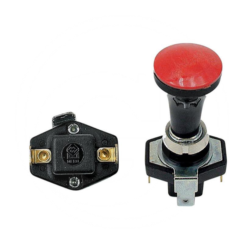 otwór montażowy Ø 12,5 mm, 3 płaskie przyłącza wtykowe 6,3 mm, obciążenie: 120 W/12 V, oprawka Ba7s, przycisk czerwony - Waga: 26 g