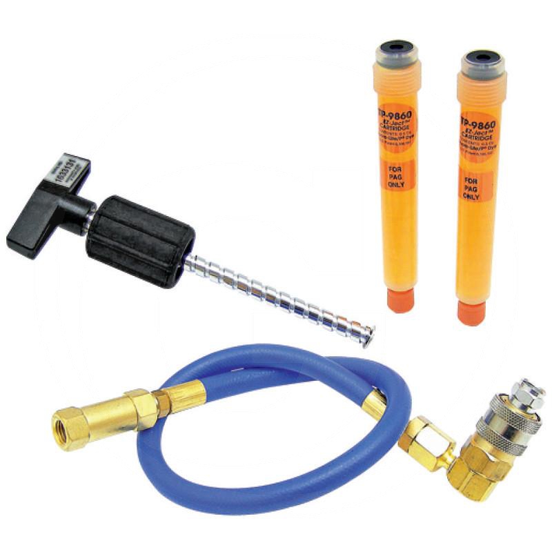 - Zawartość zestawu: przewód niskiego ciśnienia z szybkozłączem do klimatyzacji R134a, 2 kartusze dodatków uszlachetniających, adapter odpowietrzający, trzpień i naklejka informacyjna