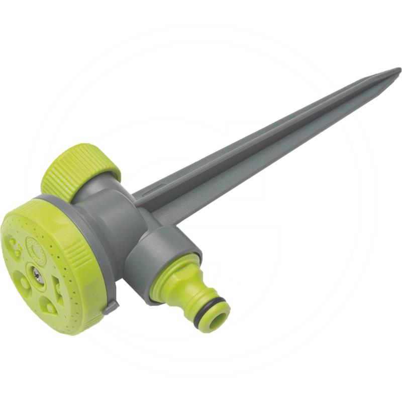 - Wersja: Zraszacz o 5 różnych kształtach strumienia, do nawadniania powierzchni maks. 70 m² przy ciśnieniu wody zaledwie 3,5 bar . Możliwość podłączenia do wszystkich powszechnie stosowanych systemów z tworzywa, maks. zakres zraszania: 9,5 m w średnicy.